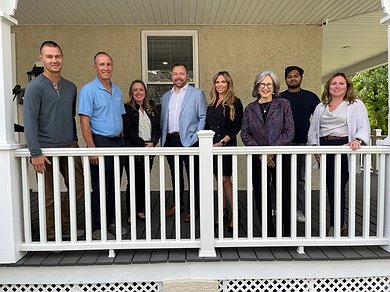 Drew and Bryce Mininger of H Mininger and Son contractors; Stacy Dougherty, Co-Executive Director of Laurel House; Jason Van Buskirk and Melissa Pilong, Laurel House Board Co-Presidents; Beth Sturman, Co-Executive Director of Laurel House; Ash Abedin; and Catherine Derbyshire with Lezenby Architectural firm, pose outside a newly refurbished home in North Wales. (Photo courtesy of Laurel House)McDevitt added Tuesday that he, borough Manager Christine Hart, assistant manager Alex Turock and councilman Sherwin Collins were able to tour the house during the ribbon cutting, and all came away impressed.