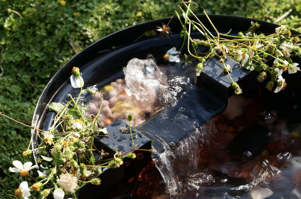 It’s a perfect pairing with an Aquascape waterfall. You could, for example, install a second mini feature nearby like a bubbling rock or basin using the POPOSOAP pump.