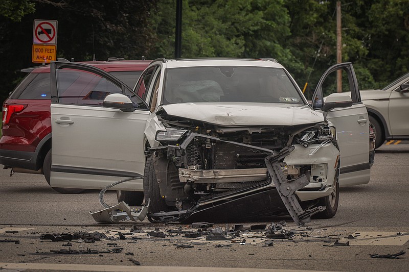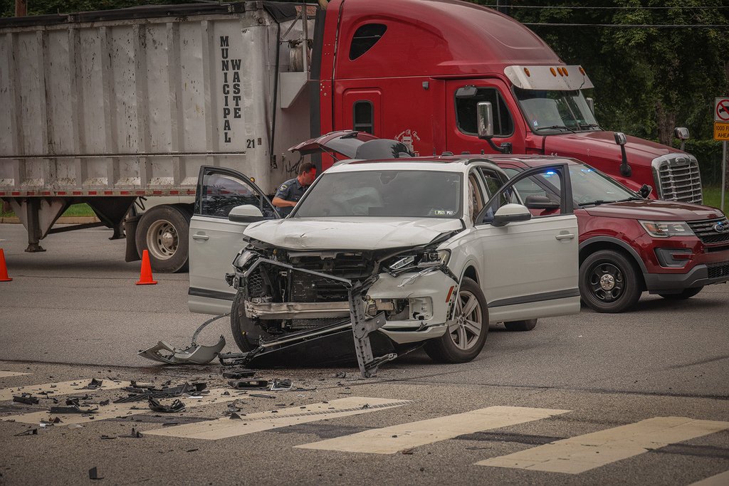 Two other occupants stood outside a white Audi SUV, which sustained heavy front-end damage in the crash and was blocking Bethlehem Pike.