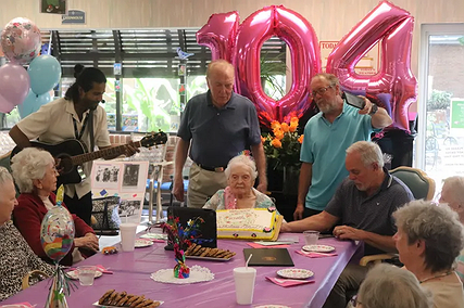 “We are celebrating 104 years of a well-lived life,” said life enrichment coordinator Michelle Moreland, adding, “There are over eight billion people in the world, with only around 700,000 of them being centenarians. That means only about 1% of the population reaches 100 years of age or older.”