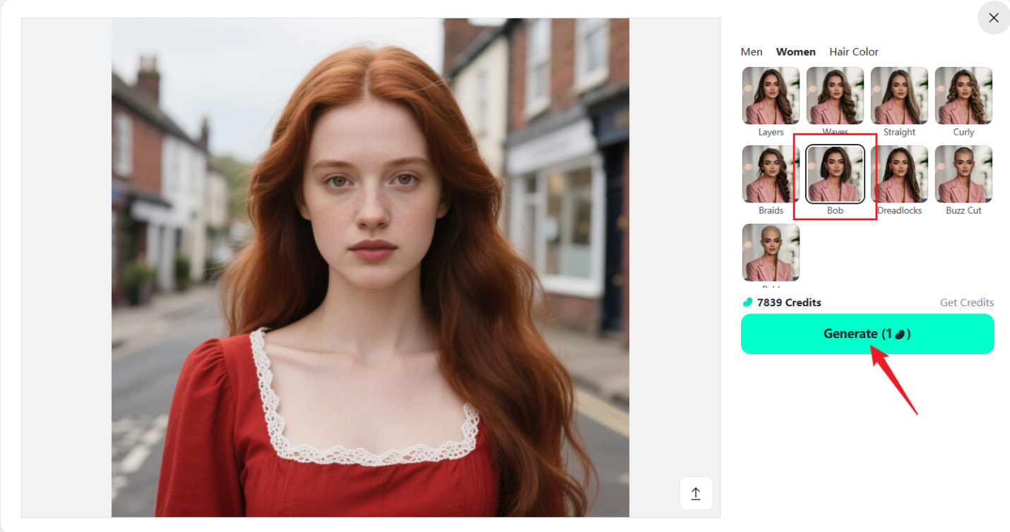 You can browse through numerous short haircuts, such as classic-looking bobs and edgy pixie cuts. The short hair generator uses AI that combines every design with your features and head shape.