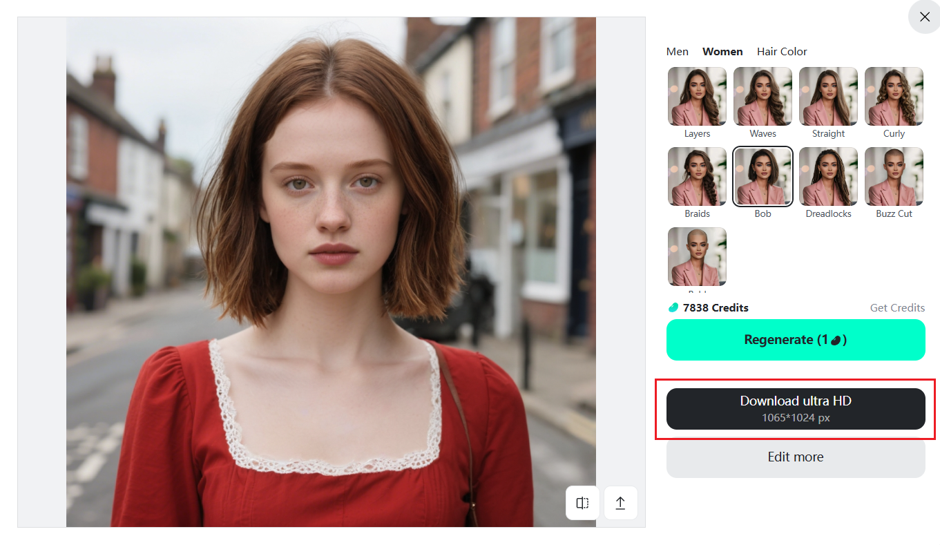After generation, you can download your new look in high resolution. Show it to your friends, keep it to your stylist, or share it on the Internet. It has never been this easy or fun to experiment with a new style.