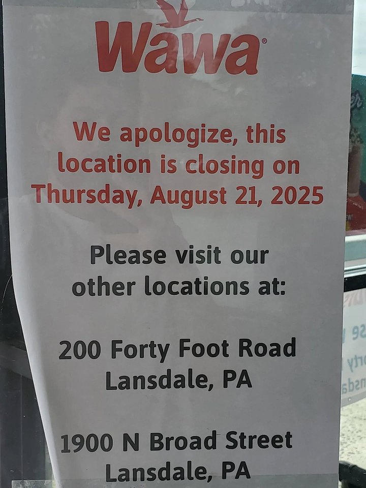 “We apologize, this location is closing on Thursday, August 21, 2025,” stated a sign in the store entrance, inviting customers to visit their two locations in Towamencin and Hatfield Township at Cowpath Road and N. Broad Street.
