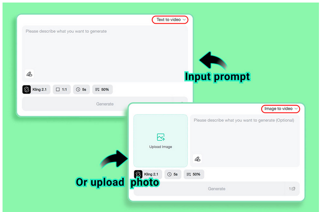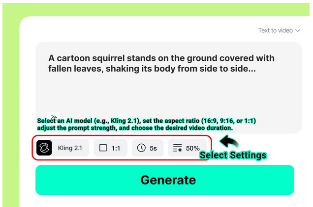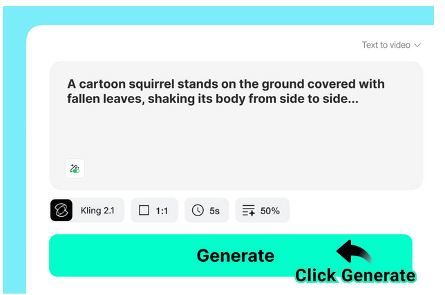 Next, simply type a sentence or two describing your idea (e.g., an animated scene showing how solar panels work) or upload a related picture to make pictures into video. The prompt to video ai free will understand and automatically create a video.