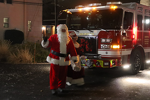 As the ceremony got underway, Santa and Mrs. Claus arrived on a firetruck to great fanfare, with children racing over to get a glimpse of the couple before lining up for pictures.