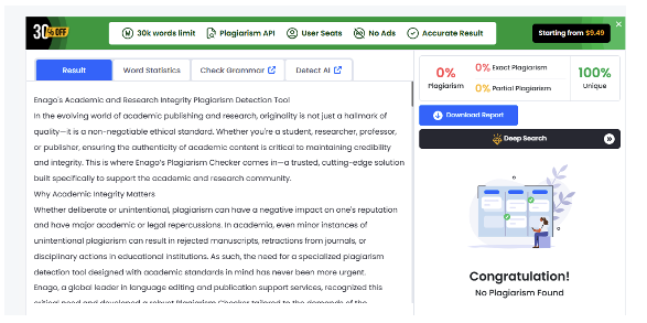 Enago’s Plagiarism Checker, on the other hand, offers: