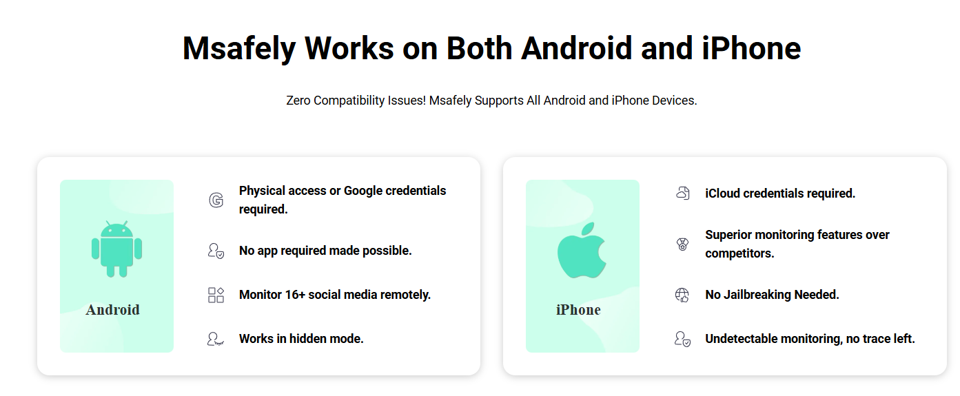 It's completely invisible and starts out in less than 2 minutes once you put in the login data. Msafely is also considered one of the most reliable and safe tools currently available in the market, especially for non-tech people.