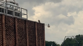 A red-tailed hawk squawks while watching from atop North Penn High School. (Screenshot of NPTV video)