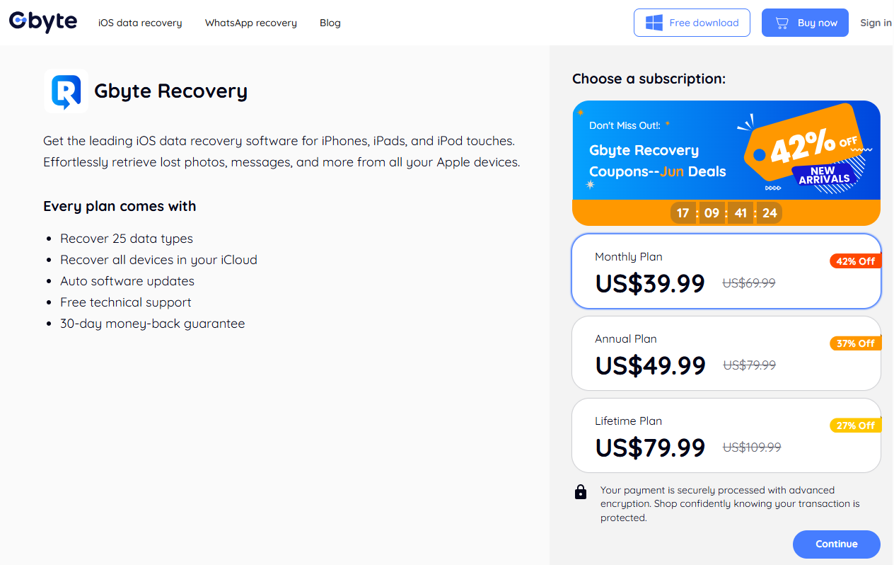 Gbyte Recovery software has a tiered subscription plan. The monthly plan costs $59.99 and is ideal for urgent data recovery or single use. With this plan, users get access to all the features and customer support. The annual plan offers the best value and is available for $69.99. It’s cheaper than the monthly plan and is ideal for regular recovery. The lifetime plan requires users to make a one-time payment of $99.99 for permanent access to the software. This plan is best suited for frequent users.