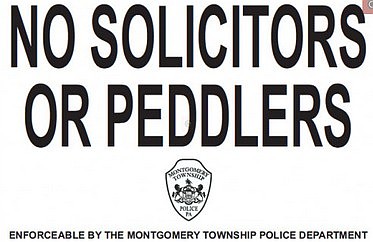 Montgomery Township residents can now pick up free "No Soliciting" window clings at the Police Department to help deter unwanted door-to-door solicitations. The clings, which can be placed on a front door or window, are designed to signal to solicitors that their visit is not welcome.