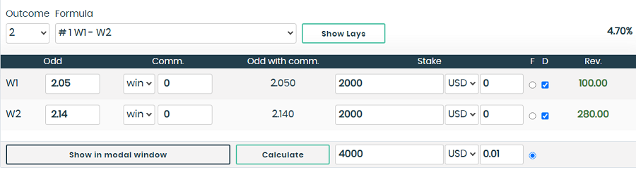 Let’s say a bettor places $2,000 on each outcome. The calculation is simple: