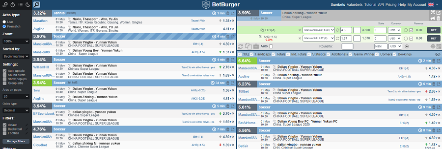 BetBurger is considered one of the best services for finding sports arbitrage online opportunities, as confirmed by numerous positive user reviews.