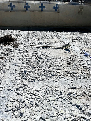 Debris can be seen on the surface of the main pool at Whites Road Park in Lansdale during a pool re-plastering project in April 2025. (Photo courtesy of Lansdale Parks and Recreation Department)