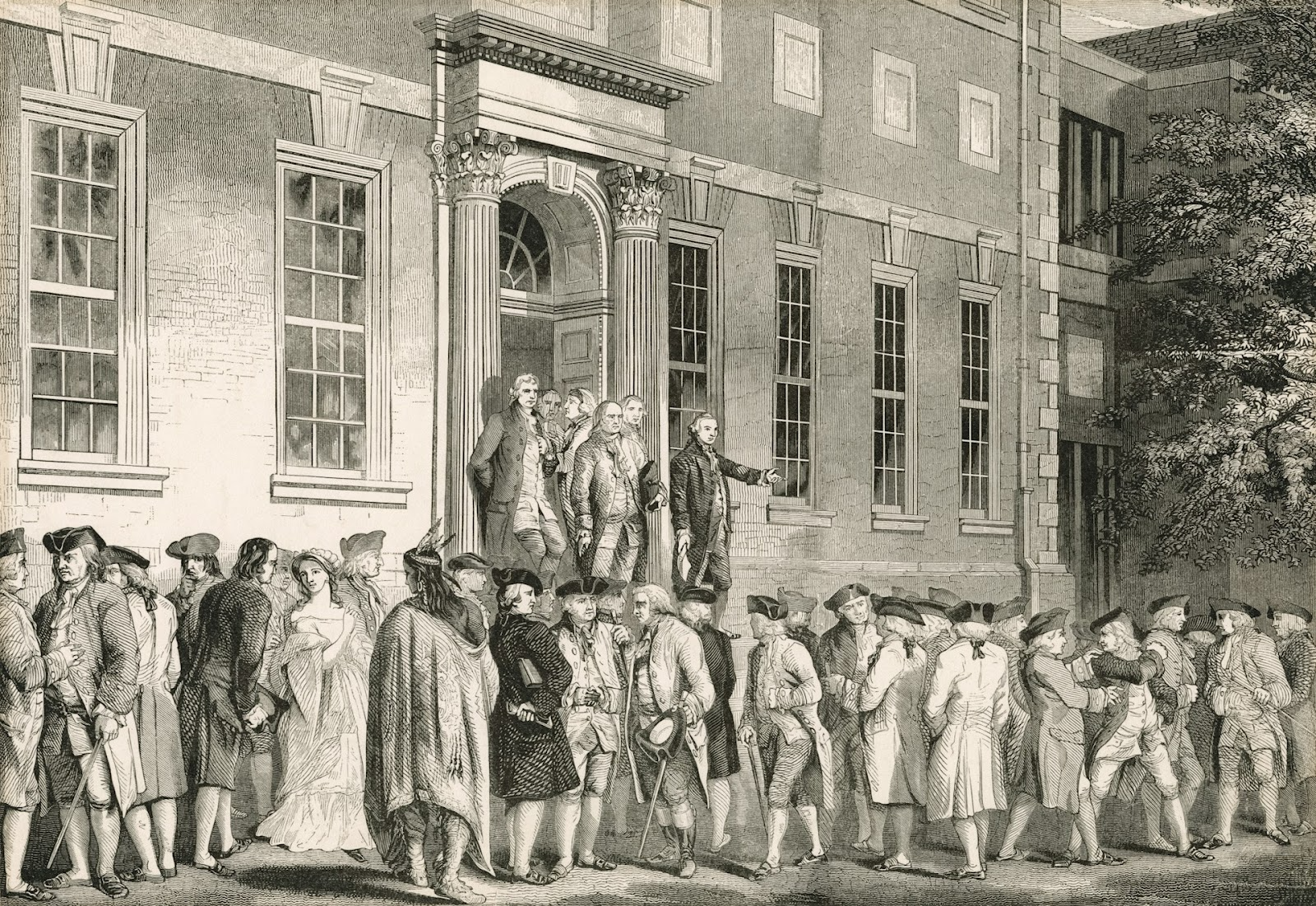 The Miriam and Ira D. Wallach Division of Art, Prints and Photographs: Print Collection, The New York Public Library. "John Nixon reading the Declaration of Independence to the people in front of the State House immediately after its passage." The New York Public Library Digital Collections. https://digitalcollections.nypl.org/items/510d47db-b097-a3d9-e040-e00a18064a99