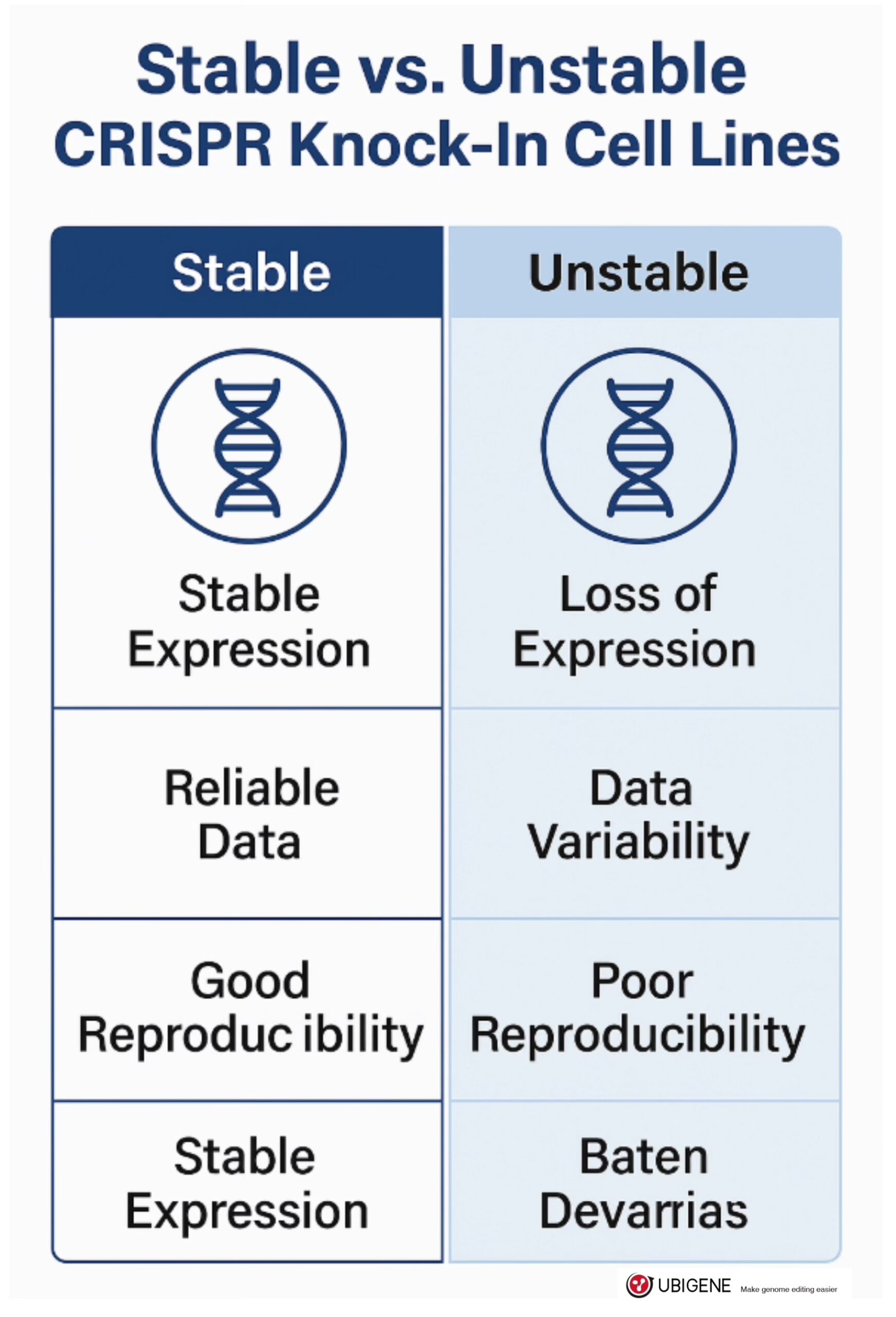 Not all edited cell lines are created equal. A truly stable knock-in model meets three core criteria: genomic precision, expression consistency, and durability over time.