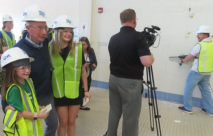 Current High School Principal Kyle Hassler said the symbolic breaking of tile was “not just starting a renovation project, we are honoring a legacy more than 50 years in the making.”