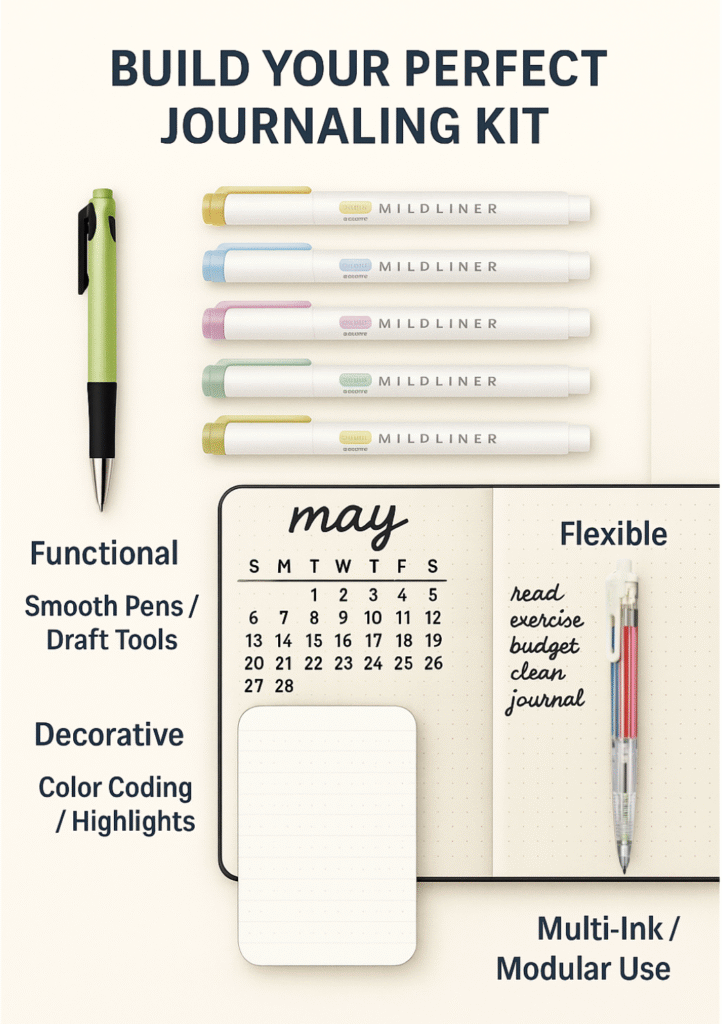 Whether it’s a hybrid ballpoint, a multi-ink pen, or a soft-hued highlighter, every detail is considered. Even mechanical pencils often feature customizable grip weights and erasable graphite optimized for fine planner paper.