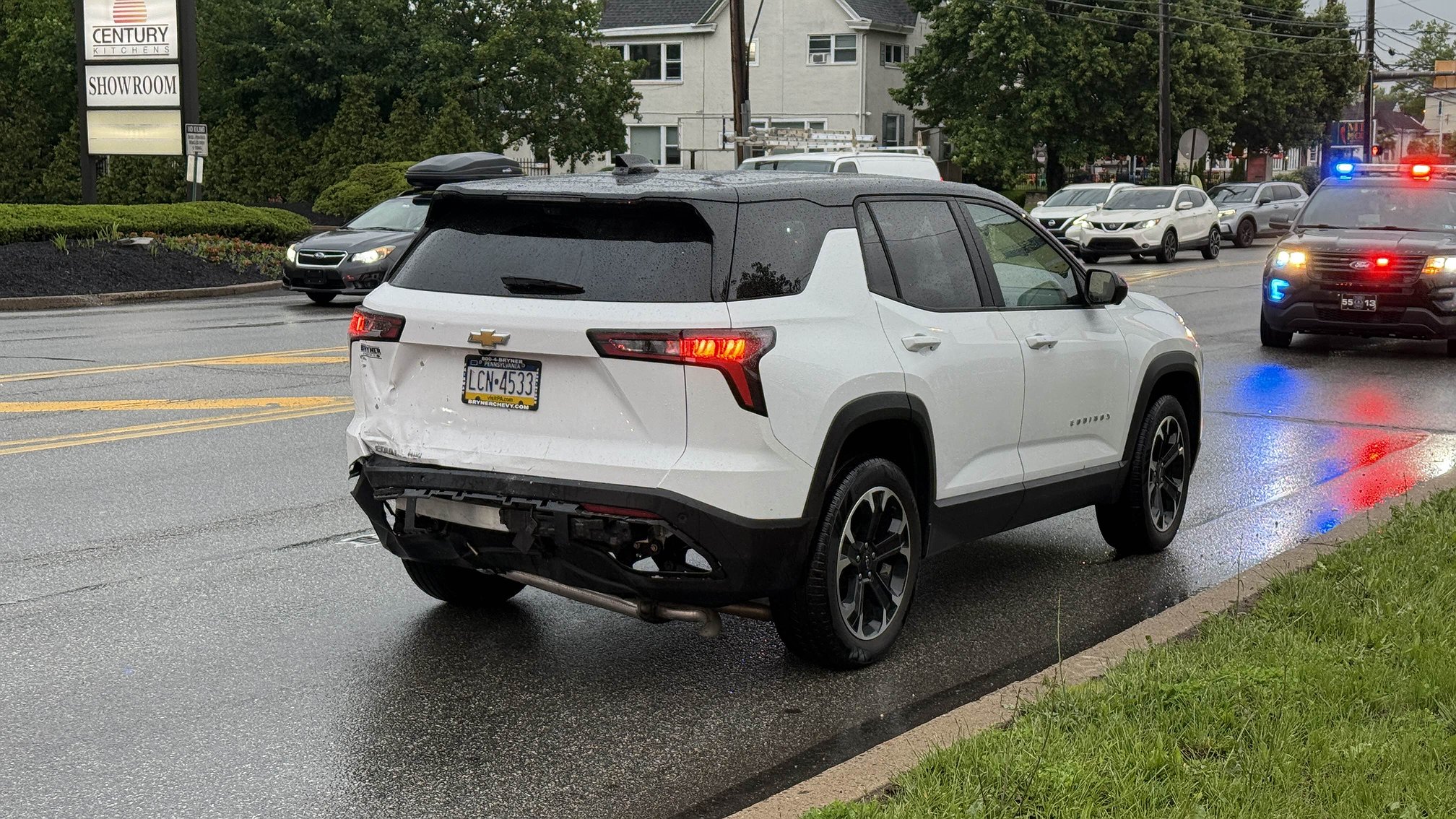 A red Nissan sustained heavy front-end damage in the two-vehicle crash around 7 p.m., and a white Chevrolet Equinox sustained rear-end damage, according to reports from the scene.