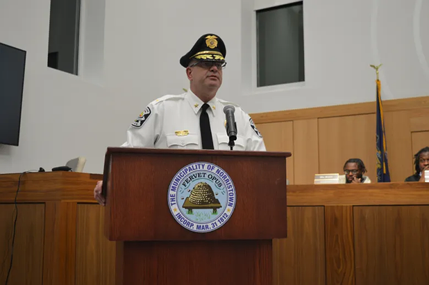 It was standing room only inside Municipal Hall’s council chambers as area residents, police officers and loved ones watched the former Lansdale chief take his next step in Norristown.