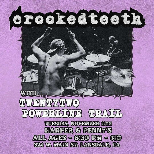 Coming all the way from California, Crooked Teeth will be playing right in the middle of the Tuesday gig. The West Coast pop-punk band is playing a few dates in support of the band Girlfriends this week and will be fitting this lovely Tuesday night in Lansdale between those shows.
