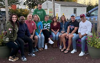 Additionally, McMillan presented a lavender-colored Friendship Bench during a celebrity bartending event with Barrett Brooks at Suspenders Bar & Grill in Franconia Township, prior to the Oct. 9 Eagles game.