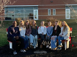 Former Philadelphia Eagle Mark McMillian last month presented a Friendship Bench to students at Souderton Area High School, complete in the school's signature black, red and white color scheme.