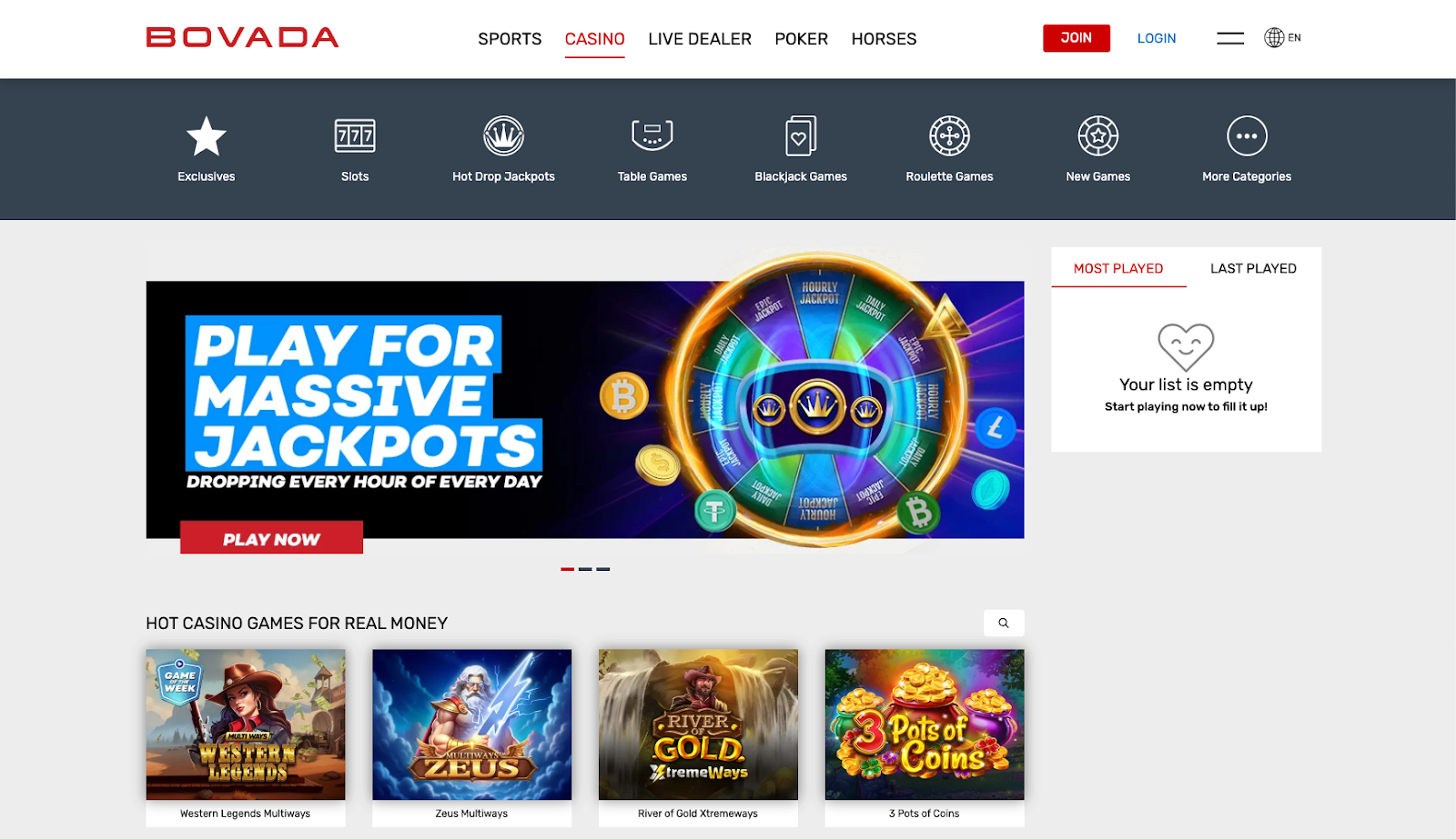 Bovada is an online casino that has built its reputation over the past decade. Over the years, the casino has kept pace with all the casino trends to ensure its players have an elite gaming experience. To begin, the casino has partnered with renowned game providers to offer players a wide selection of hundreds of titles to choose from. This includes top slots, table games, and live dealer games. Additionally, the casino has placed a strong emphasis on offering players excellent bonuses. This includes crypto users who receive a unique welcome offer tailored to their needs. Notably, Bovada has significantly refined its user interface to ensure players have an elegant and modern experience with an easy-to-navigate UI.