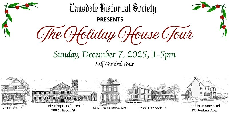 Four vintage homes and one house of worship, all in Lansdale Borough, will be decked out for the holidays and open for tours on Sunday, December 7, from 1 p.m. to 5 p.m., brought to you by the Lansdale Historical Society.