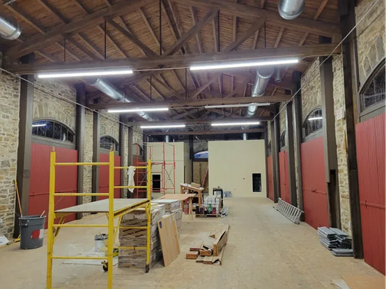 Renovation work within the Discover Lansdale Freight House can be seen from the ceiling rafters in Sept. 2025. (Credit: Discover Lansdale)