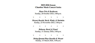 The Chamber Music Concert Series sells out and is a must see add on to the Masterworks Concert Series. This Series allows audiences to experience the musicians of the Southeastern Pennsylvania Symphony Orchestra in an intimate setting within the same performance venue of Calvary Baptist Church. From a piano trio, marimba soloist, wind quintet, and a string quartet these concerts add to the concert experience for the community. The Chamber Music Concert Series launches October 26 with a piano trio and the music of Beethoven and continues throughout the season on Sunday afternoons. Other Chamber Music Concerts include the music of Mozart, Rossini, Bach, Debussy, Ravel, Fauré, and Brahms.