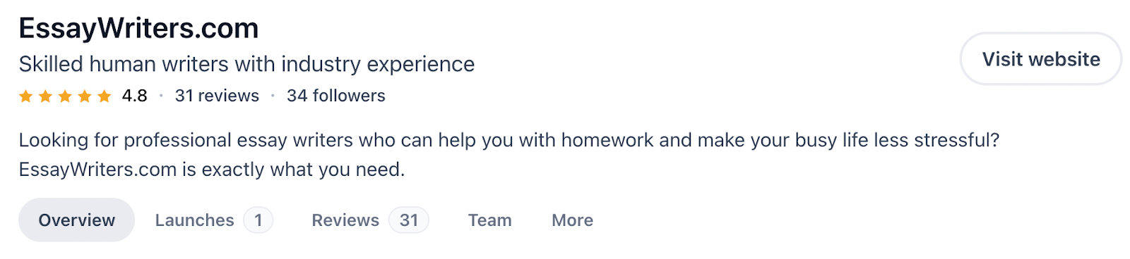 Reputation-wise, EssayWriters scores well: