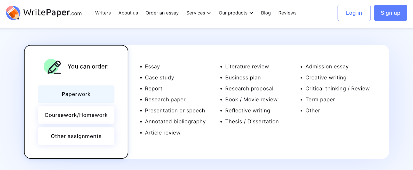 Need something unusual? Just select “Other.” This WritePaper review shows how flexible the platform really is.