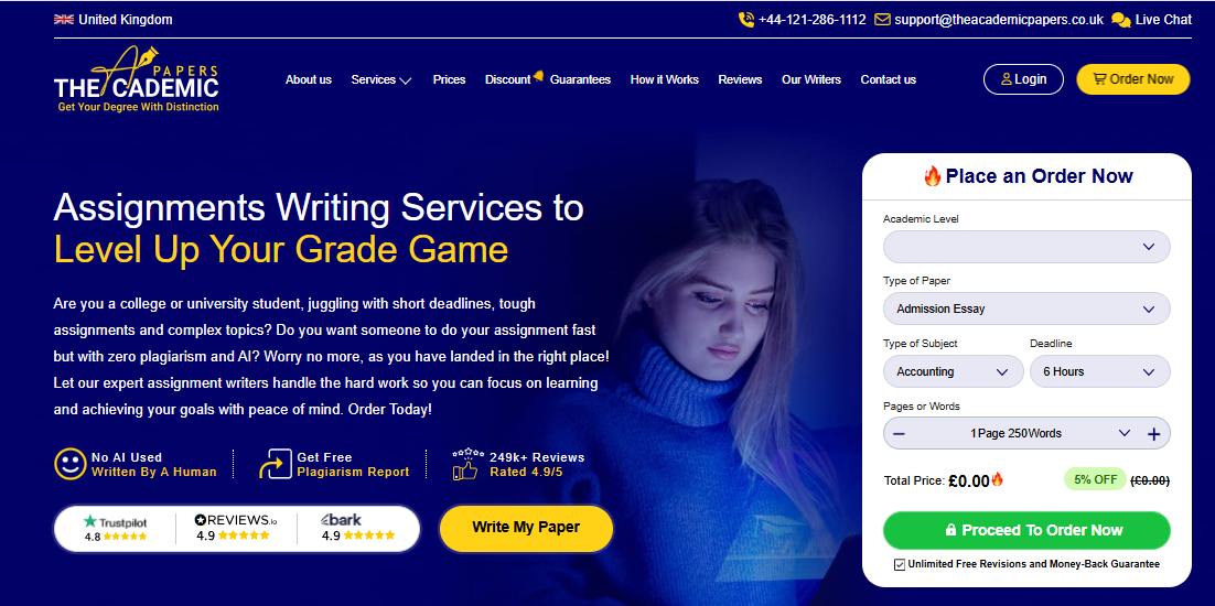 A professional assignment writing website that offers clear and transparent guarantees is an indication of quality. According to my perspective, The Academic Papers UK is one of the most reliable assignment writing companies in London, Birmingham, and across the United Kingdom