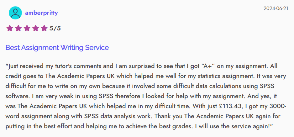 After more than a year of working with The Academic Papers UK, I am confident that it is the most reliable assignment writing company in the UK. The thing that impressed me the most was the reliability and professionalism that they displayed on every task.