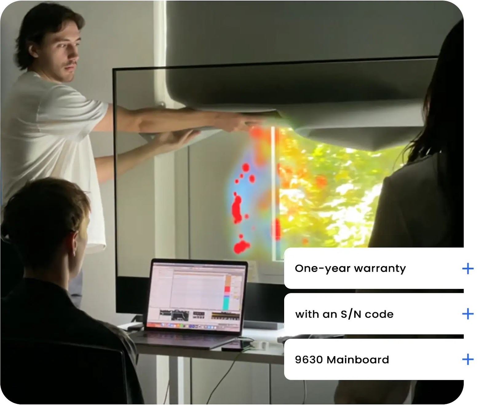 The 77-inch Transparent OLED Display uses self-emissive organic pixels to achieve exceptional transparency between 40% and 50%. When powered off, the screen becomes nearly invisible; when active, it projects floating visuals that appear to hover in space. With 4K UHD resolution (3840×2160), 1000 nits brightness, and a remarkable 1,000,000:1 contrast ratio, every detail is crisp and realistic. The wide 110% DCI-P3 color gamut ensures natural, accurate color reproduction, while a 0.1 ms response time eliminates motion blur. The screen’s ultra-slim 5 mm profile and narrow 3 mm bezel create a sleek, modern appearance. Its anti-reflective coating also maintains perfect visibility even under strong ambient light.