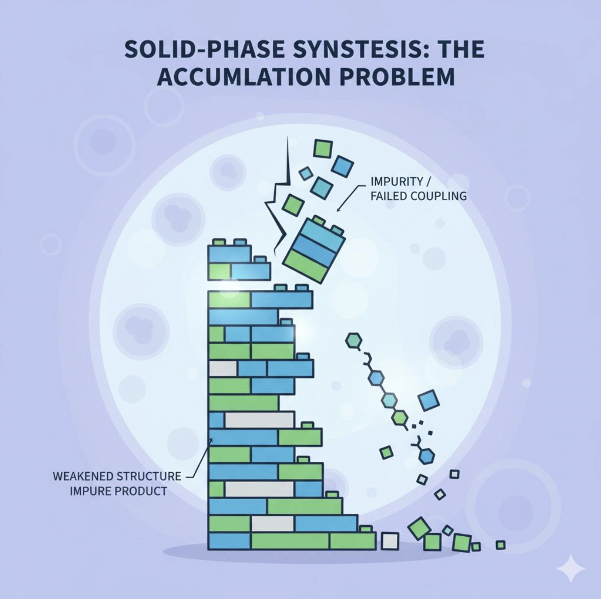 A useful analogy is building a tower out of Lego bricks: if just one block is misaligned, the entire tower becomes unstable. In the same way, one failed coupling step can weaken the integrity of an oligonucleotide chain.