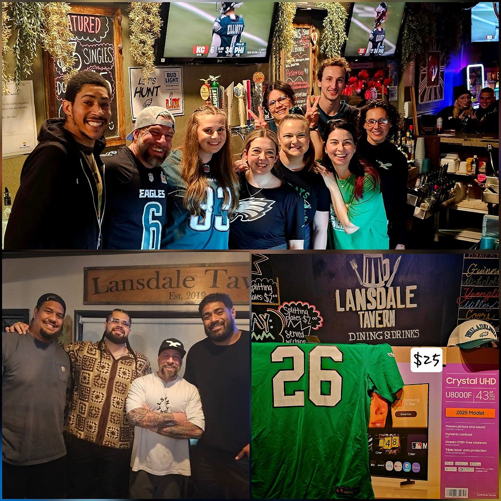 At Lansdale Tavern (839 W. Main St.), fans can enjoy wings, beer, and the chance to score big in a quarter-by-quarter raffle: a $25 gift card after the first, an XL Saquon Barkley jersey at halftime, an Eagles hat in the third, and a 43-inch Samsung TV in the fourth.