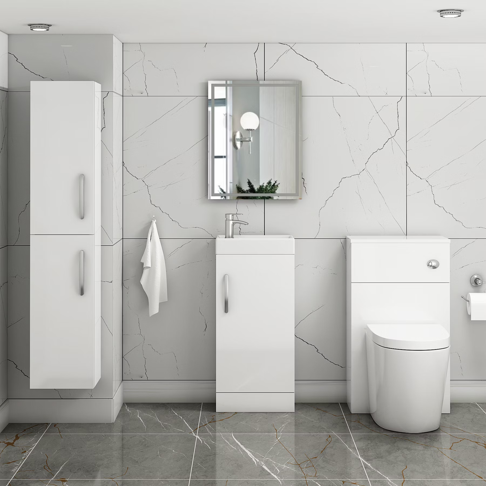 Tall, slim cabinets or tallboy cabinets are at the heart of maximising the space If space allows, you can use these beside the wall hung vanity unit to further enhance the functional storage and style. These cabinets utilise vertical space, allowing you to save bathroom space.