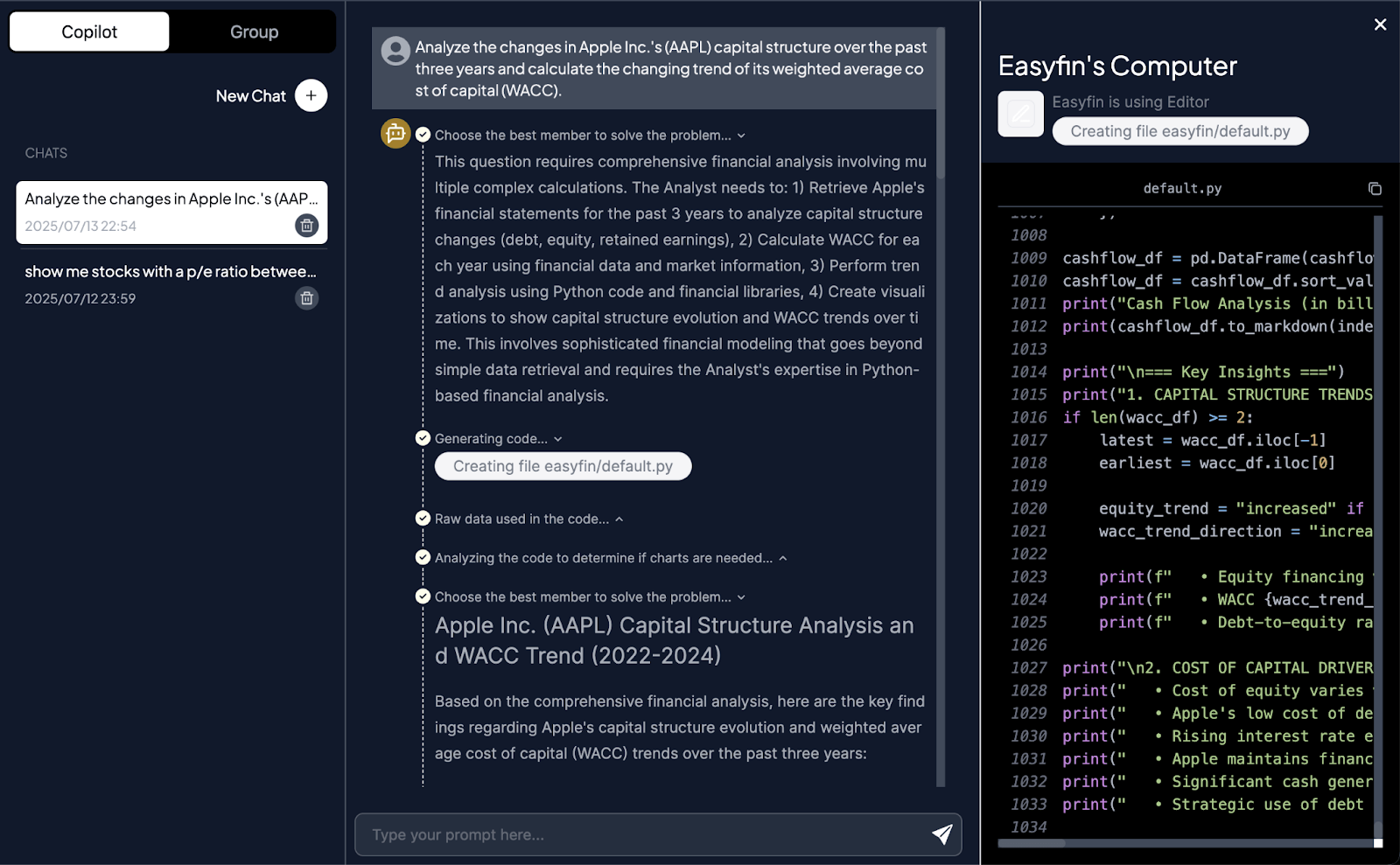- Financial analysis that uses AI to automate data extraction and generate insights without the need for manual input