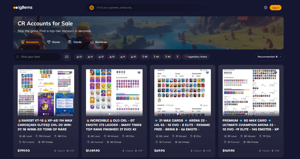 The marketplace for Clash Royale accounts is thriving, with prices that directly reflect the factors listed above. While pricing can fluctuate, there is a clear structure to how accounts are valued. Here’s a general idea of what you can expect different tiers of accounts to be worth.