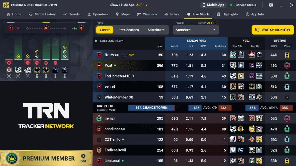 This isn’t just data; it’s pre-round intelligence. Knowing you’re up against a team with a highly aggressive Ash main or a seasoned Clash player can inform your team’s strategy before the first drone is deployed. Beyond the live overlay, the R6 Tracker website stores an exhaustive match history, letting you review past games with incredible detail.