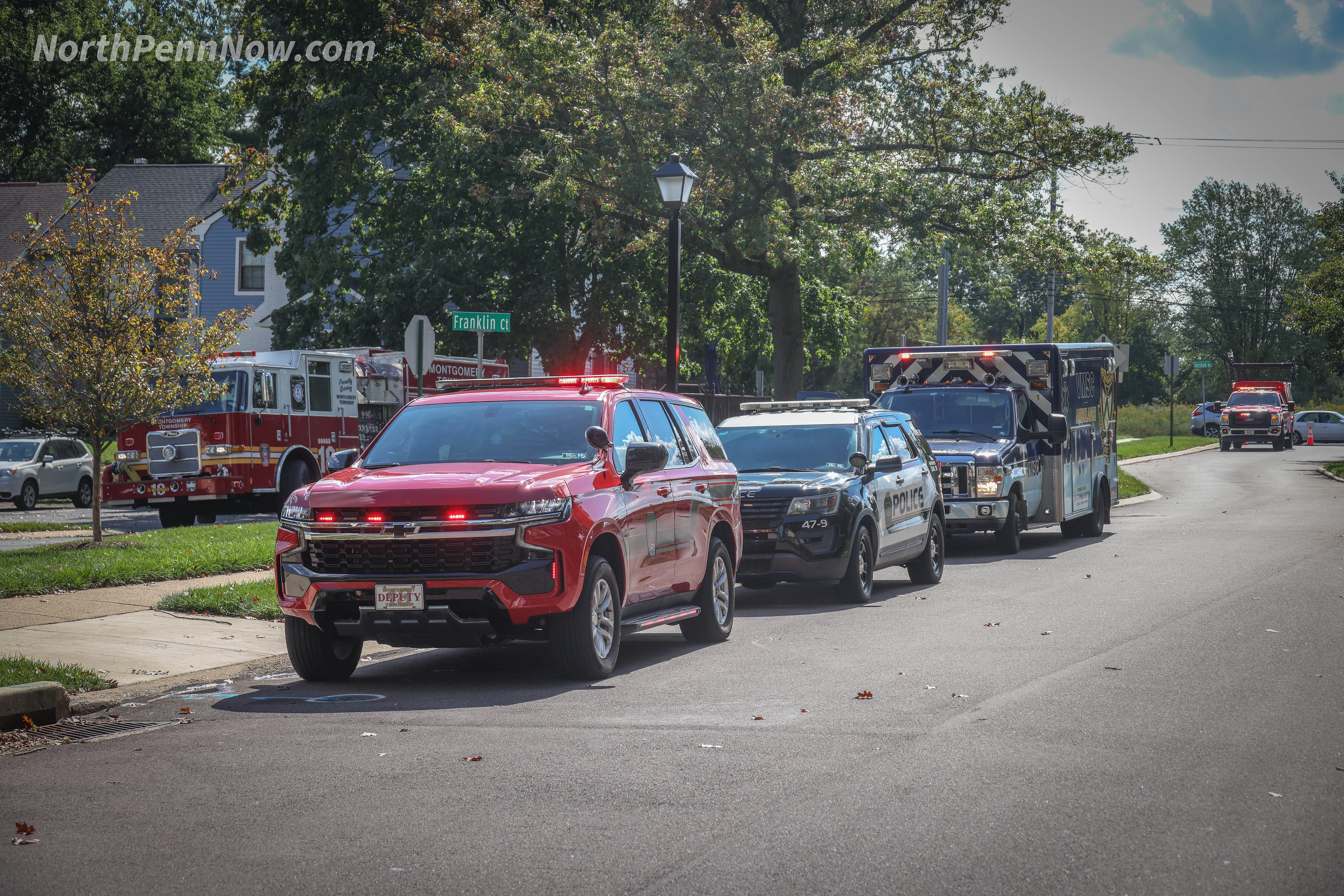 There are no injuries and no reported threat to the public. Montgomery Glen entrances are blocked off at Horsham Road and at North Wales Road.