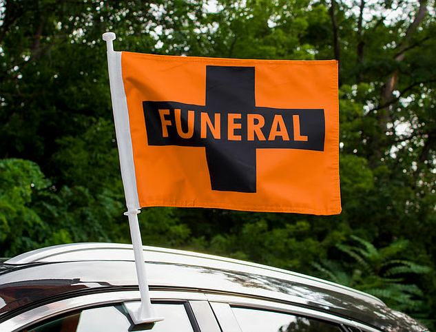 Those privileges apply only when specific conditions are met. Each vehicle in the procession must have headlights and hazard lights activated and display a flag or other identifying insignia.