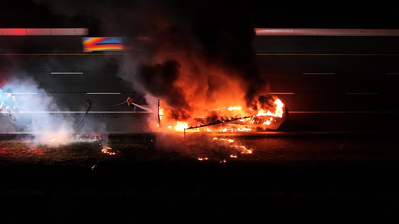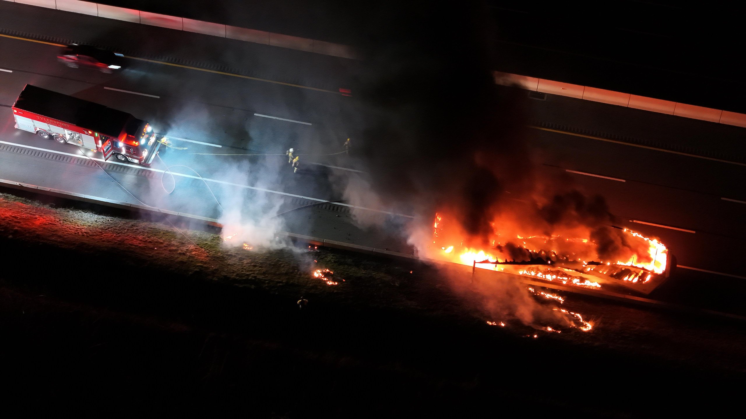 The fire was reported around 10:54 p.m. Thursday between mile markers 32.4 and 32.6 on the southbound side of the highway, near the Route 63/Kulpsville interchange and the Schoolhouse Road access gate.