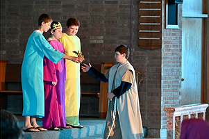 The Passion of Our Lord was prayerfully presented at Mater Dei Catholic School on the evening of Tuesday, March 31 by the school’s seventh grade students, alongside their first grade prayer partners.