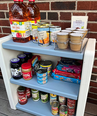Blessing Birds Little Free Pantry offers a mix of everyday essentials, comfort foods, and small items to support families and children. Items usually regularly available include: