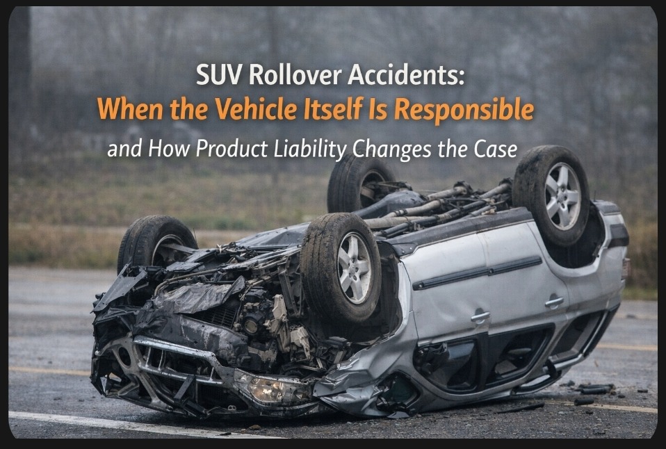 SUV rollover crashes are among the most lethal motor vehicle accidents, producing fatality rates that significantly exceed those of frontal and side impacts at comparable speeds. The elevated fatality rate reflects several physical realities specific to rollover crashes: the multiple impact sequences as the vehicle rotates, the risk of occupant ejection when windows and doors open under rollover forces, and the roof crush that occurs when the vehicle's roof structure, which was not engineered to the same standard as the floor and side structures, contacts the ground and deforms into the occupant space. For seriously injured SUV rollover victims and their families, the liability analysis must begin with a question that standard vehicle accident cases do not ask: was the rollover caused by driver error, or did a defect in the vehicle's design, its electronic systems, or its structural integrity make the rollover more likely, more severe, or more injurious than it should have been?