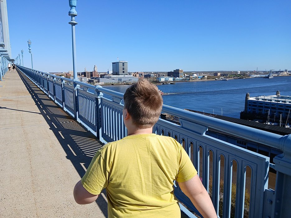 Bastian also loves bridges, and the Ben Franklin Bridge is his favorite. That day, we took the train to Jefferson Station, walked to Penn’s Landing, and then took a ride to the start of the pedestrian walkway on the Philadelphia side. From there, we walked the entire length of the Ben Franklin Bridge to Camden.