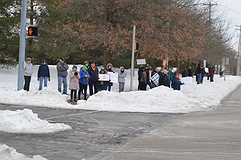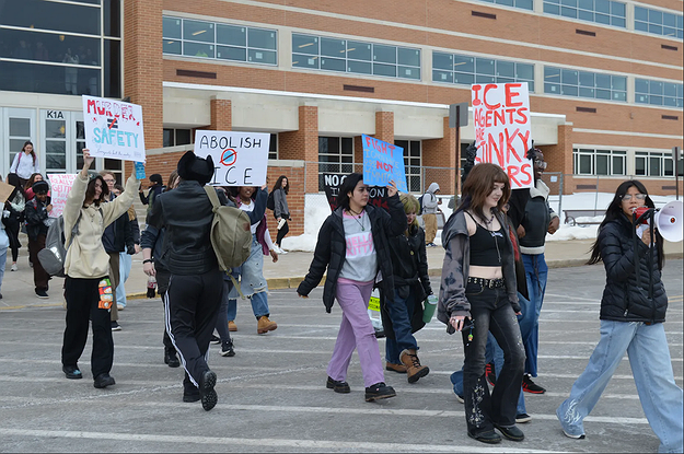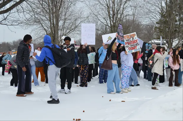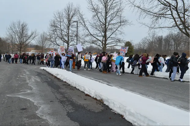 As students walked out of the building, a steady stream grew through the parking lot to the edge of the property along Valley Forge Road, braving frigid temperatures and carrying signs that stated their objections to the federal immigration crackdown that’s become a cornerstone of President Donald Trump’s second term in office.