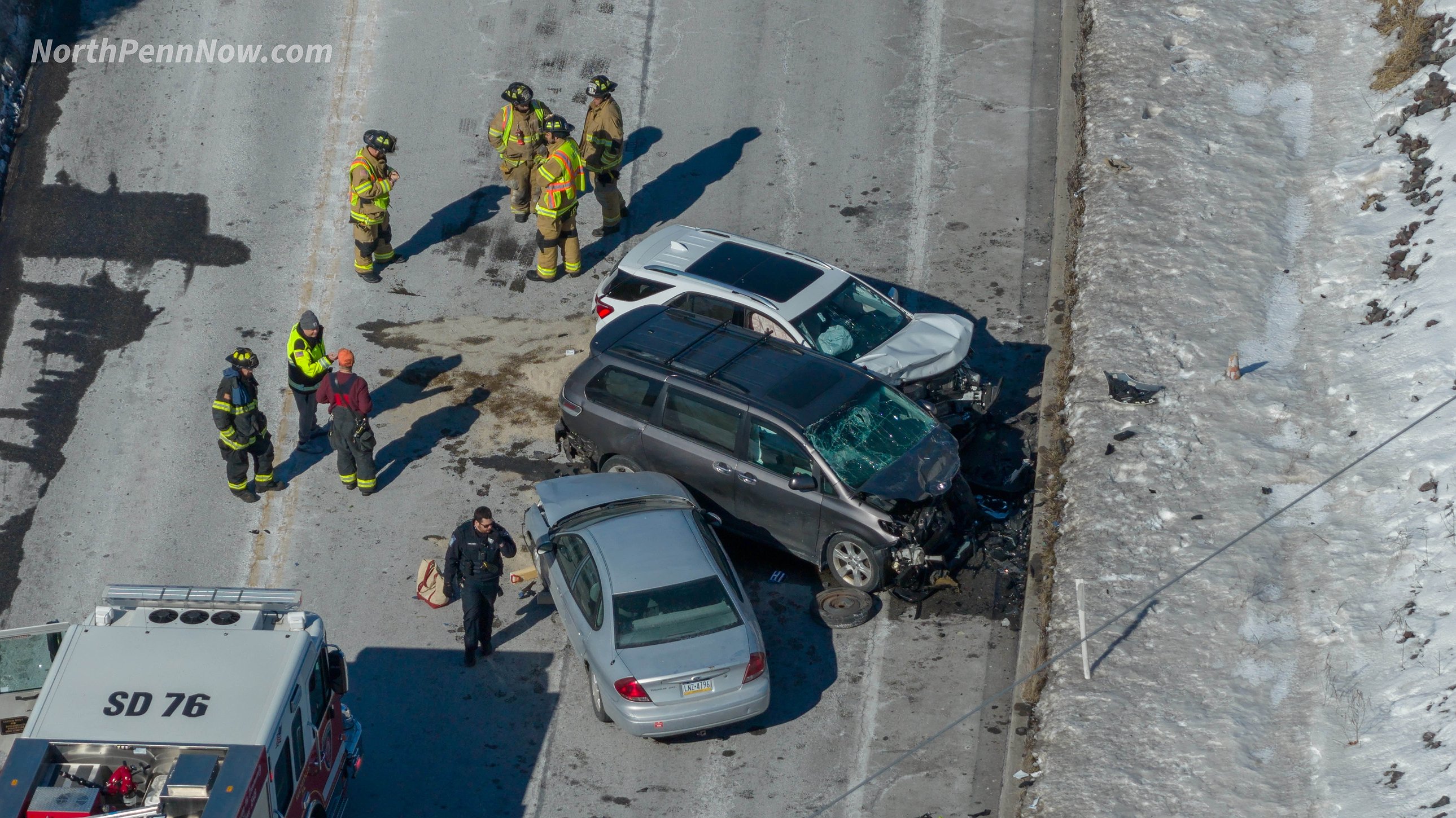 Dispatchers requested three additional ambulances, bringing the total response to four. Sumneytown Pike was shut down at Old Forty Foot Road and Wambold Road as crews worked at the scene. At least one patient was transported to St. Luke's Grand View by 12:25 p.m. Skippack EMS assisted in transport with VMSC.